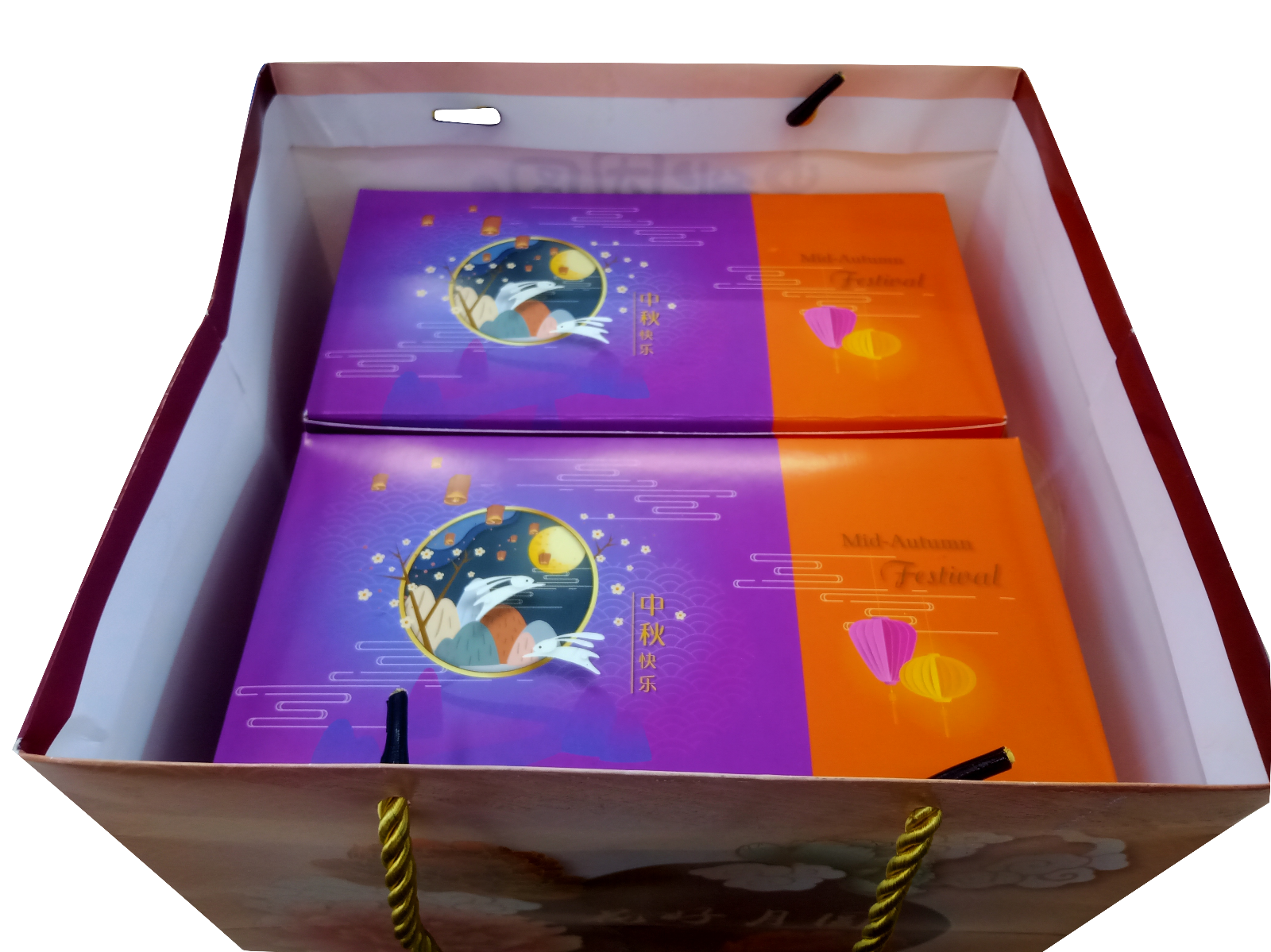 - Maximum can fit 3pcs of 4 cavity mooncake box / 6pcs of 2 cavity mooncake box 最多能容纳3个4粒装月饼盒 / 6个2粒装月饼盒