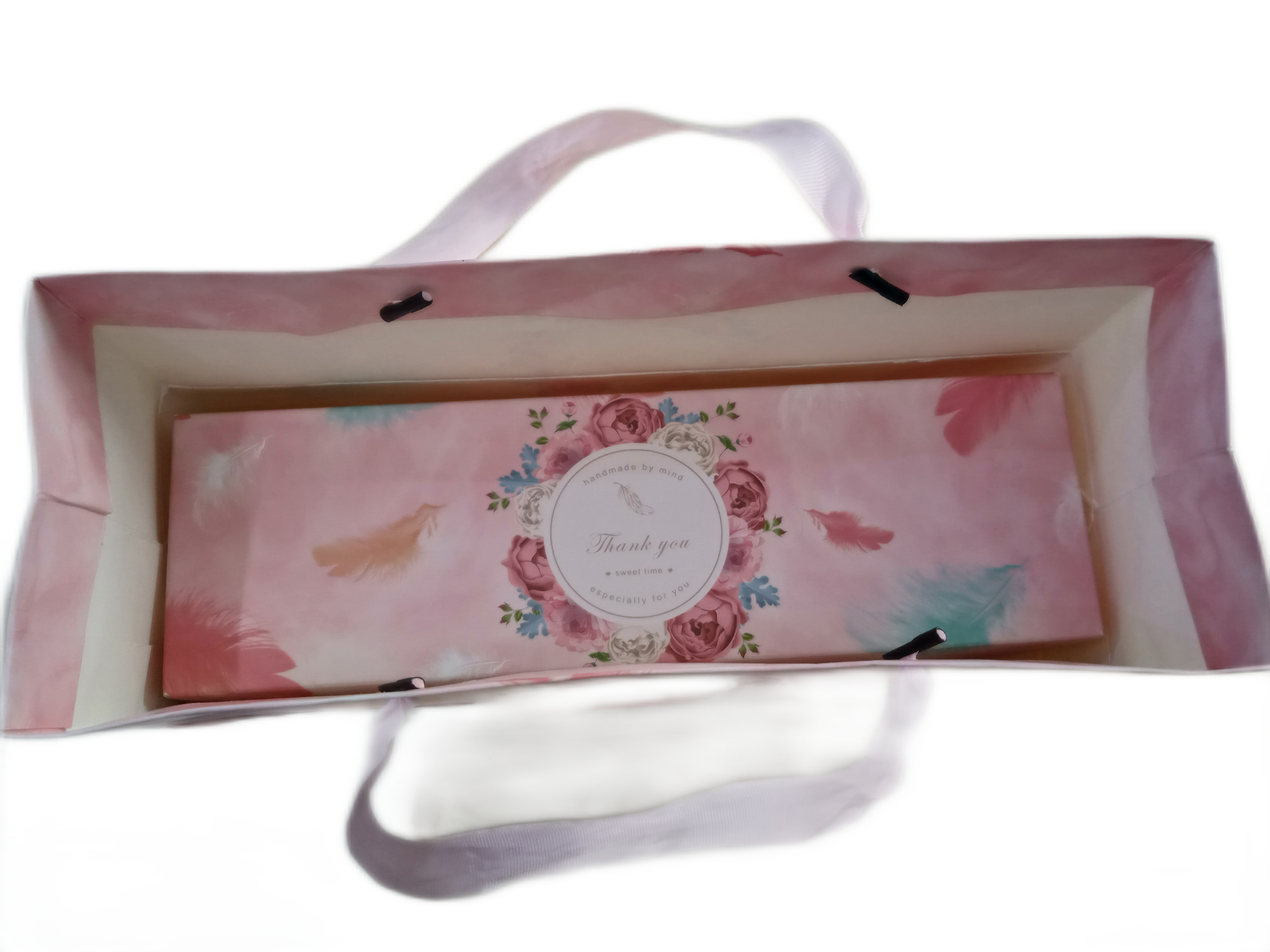Product Name 产品名称 : BX394 - 4 Holes 50g Feather Rose Box & Bag 4粒装50克月饼盒+袋子(玫瑰羽毛)