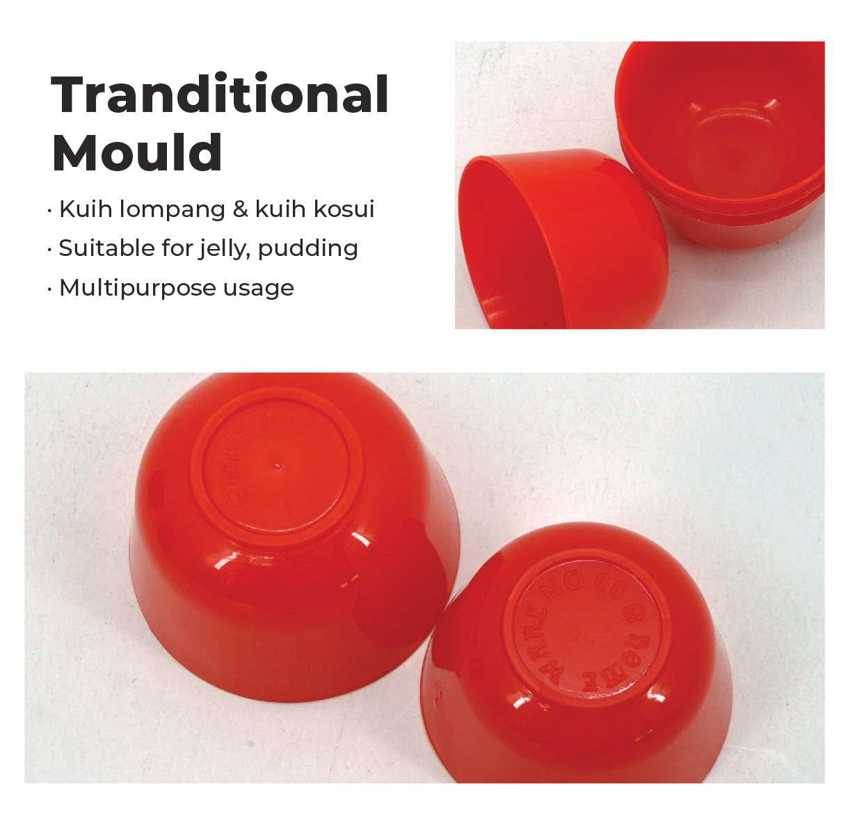 - Suitable for Kuih Lompang / Kuih Kusoi / Kuih Apam 适用于 碗仔糕/卡穗糕/发糕杯子模具