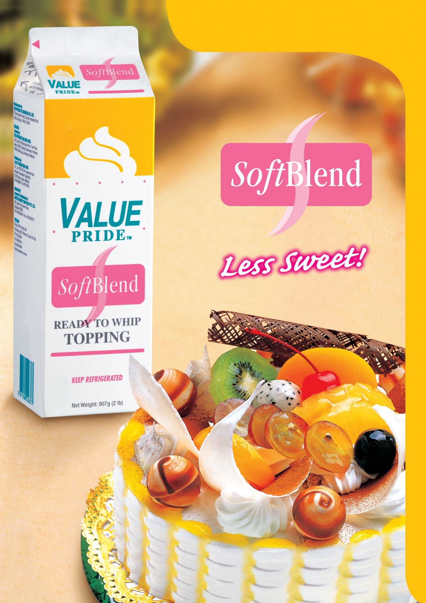 - Delicious Non-Dairy Topping Cream 美味的无奶油饮料奶油: Value Pride Soft Blend Non-Dairy Topping Cream is a delicious and dairy-free option to add a creamy touch to your beverages and desserts. It's a versatile choice for various culinary creations. Value Pride Soft Blend奶油是一款美味且不含乳制品的选择,可为您的饮料和甜点增添奶油口感。它是各种烘焙创作的多功能选择。