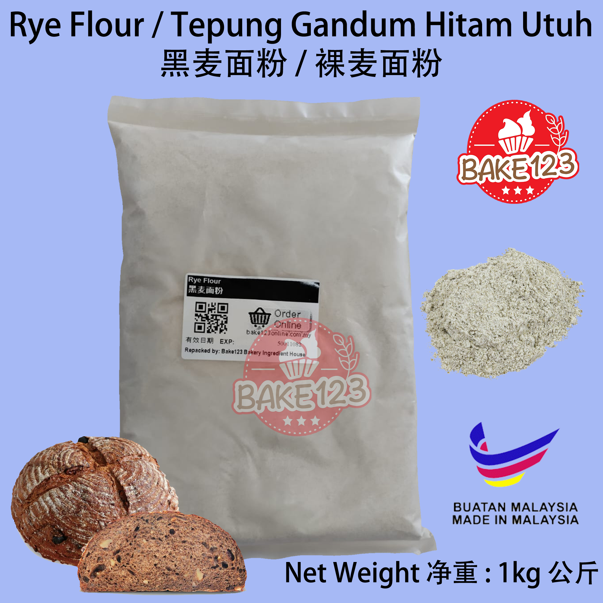 Rye Flour 1kg / Tepung Gandum Hitam Utuh