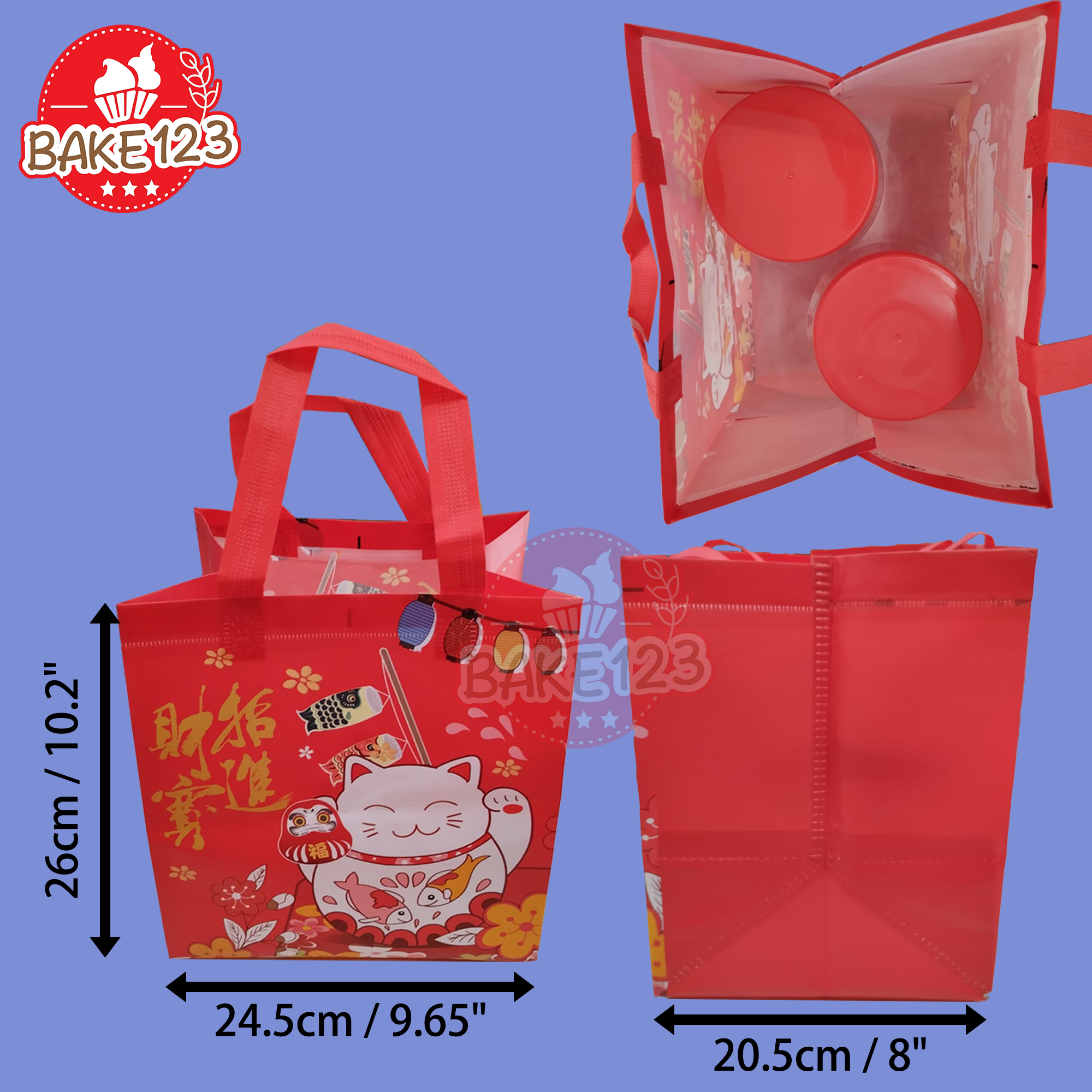 - Festive Design 节日设计 : This CNY Fortune Cat Handle Bag is adorned with a beautiful and festive design featuring the Chinese Fortune Cat and Chinese New Year elements. This makes it a perfect choice for packaging gifts, especially during the Chinese New Year celebration. 招财猫手提袋采用美丽而节庆的设计,装饰有招财猫和农历新年元素。这使其成为在新年庆祝期间包装礼物的理想选择。