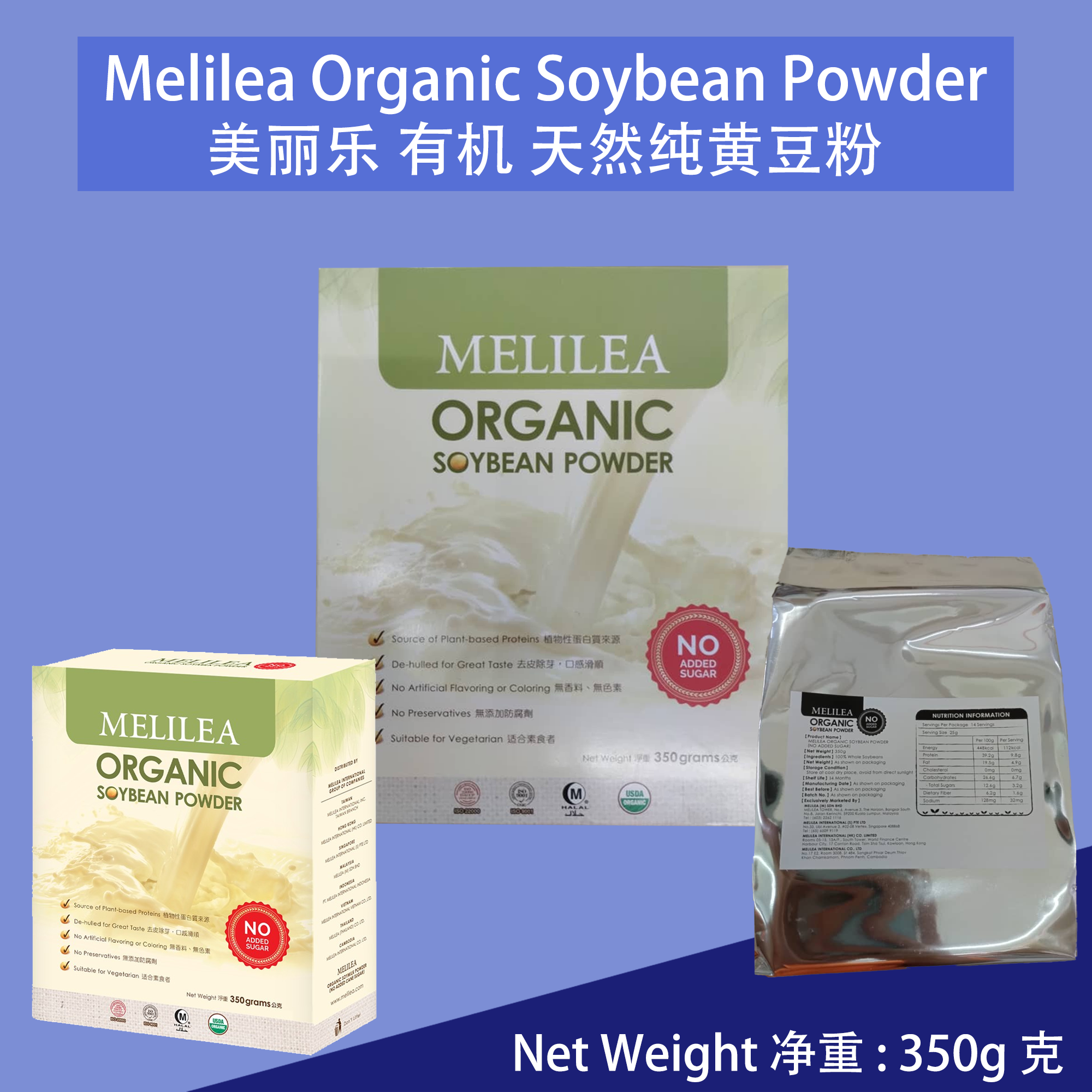 MELILEA ORGANIC SOYBEAN POWDER (No Added Sugar) 美丽乐有机无添加糖大豆粉