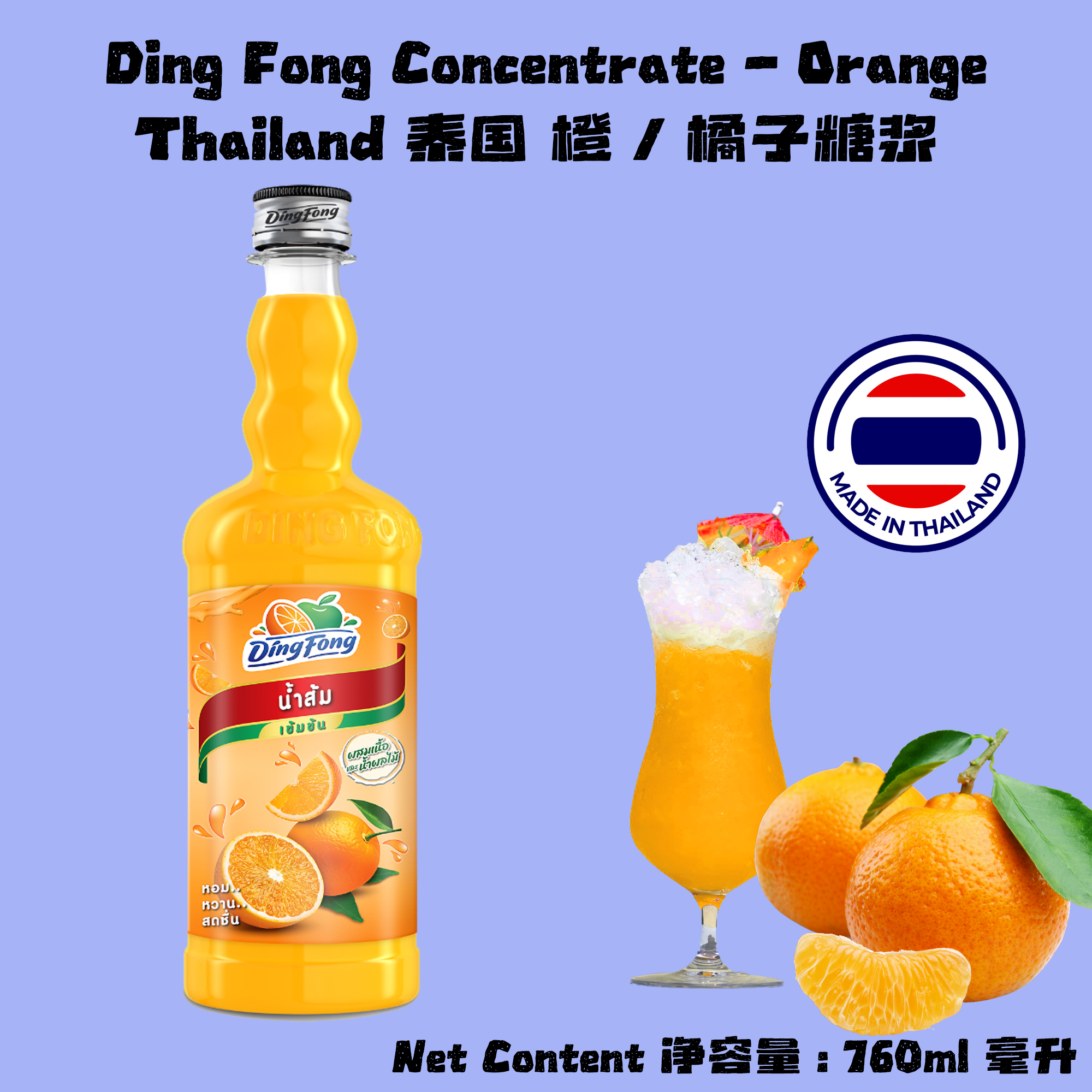 Product Name 产品名称: Ding Fong Orange Concentrated Squash 橙 橘子 浓缩果汁