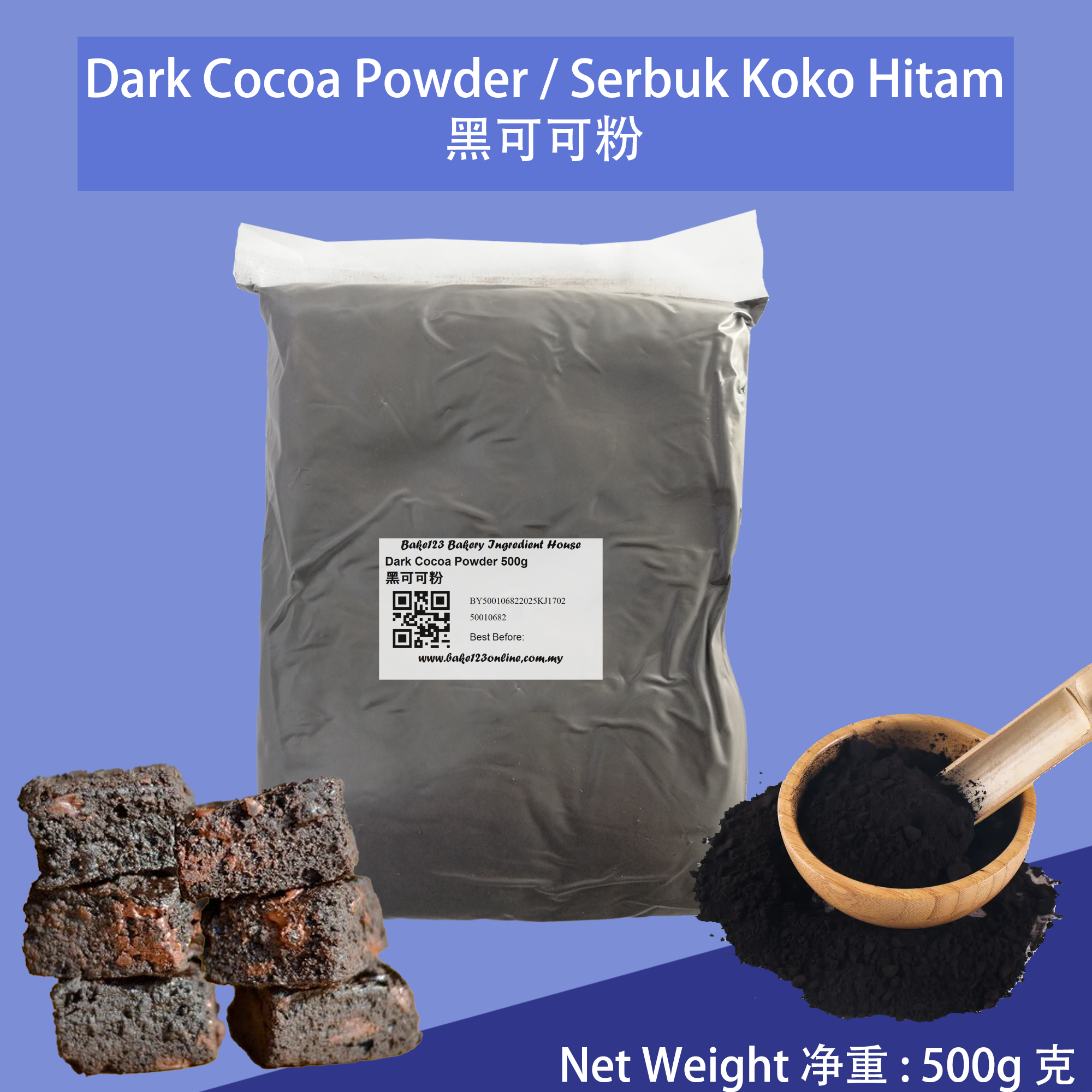 Pure Dark Cocoa Powder 500g / Black Cocoa Powder / Serbuk Koko Hitam