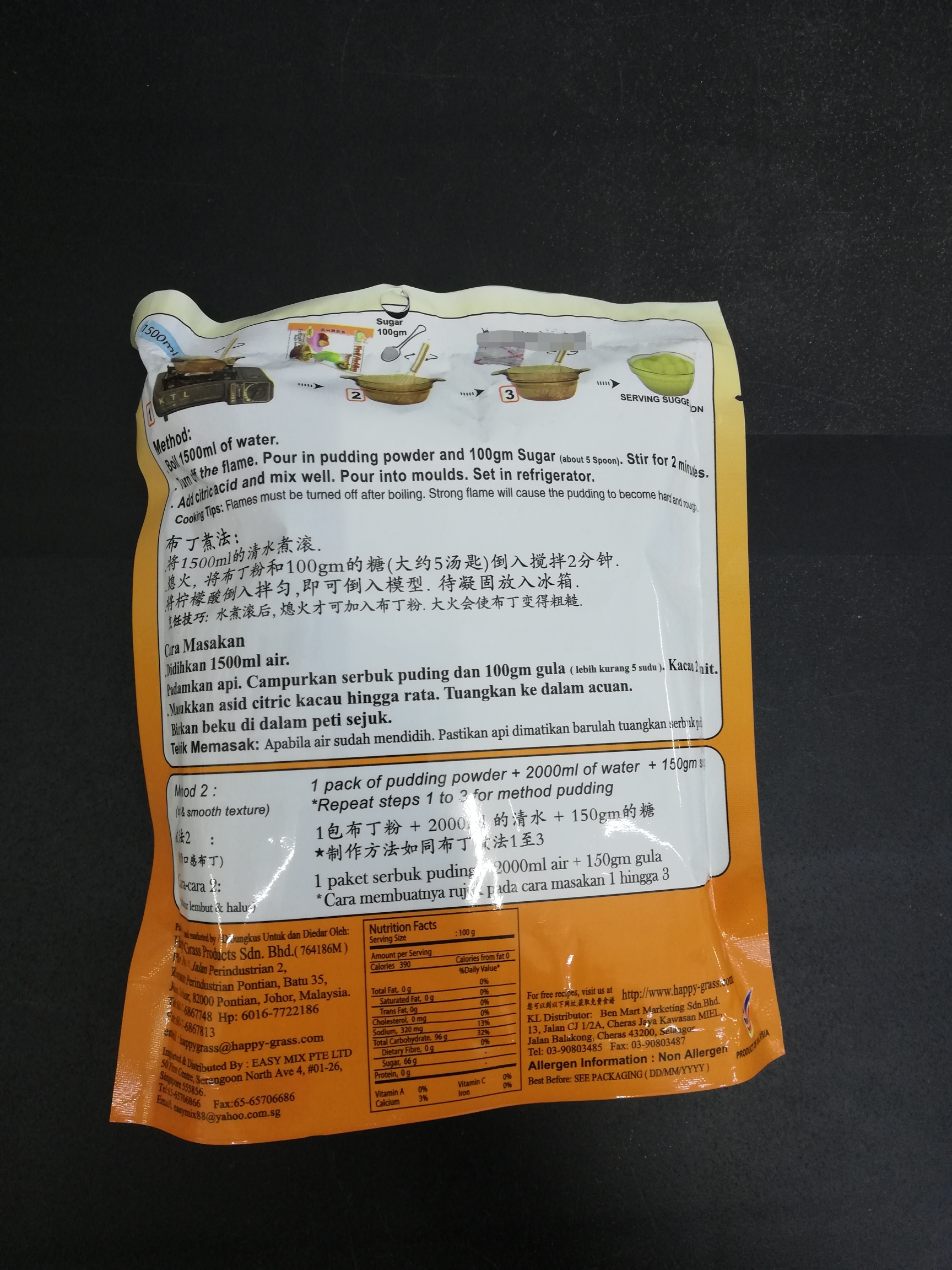Happy Grass Fruit Pudding Powder 220g - Sweet Corn