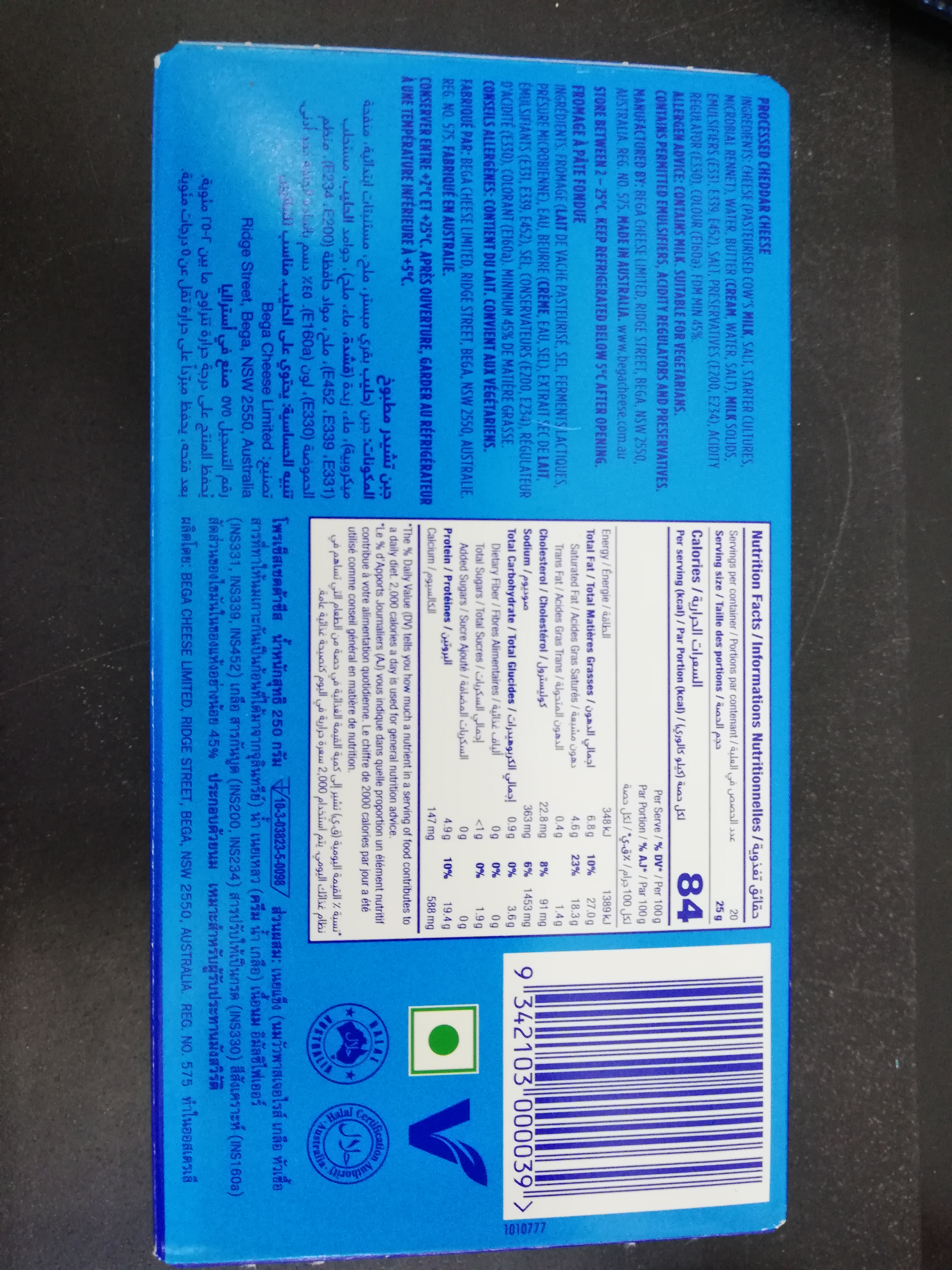 Bega Processed Cheddar Cheese Block 500g
